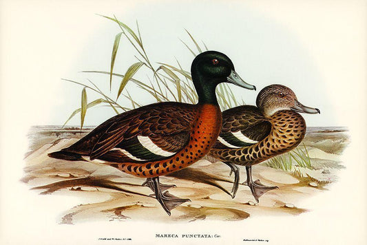 Chesnut-breasted Duck-Anas punctata White Modern Wood Framed Art Print with Double Matting by Gould, John