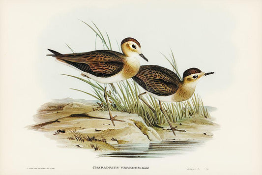Brown Plover-Charadrius veredus White Modern Wood Framed Art Print with Double Matting by Gould, John