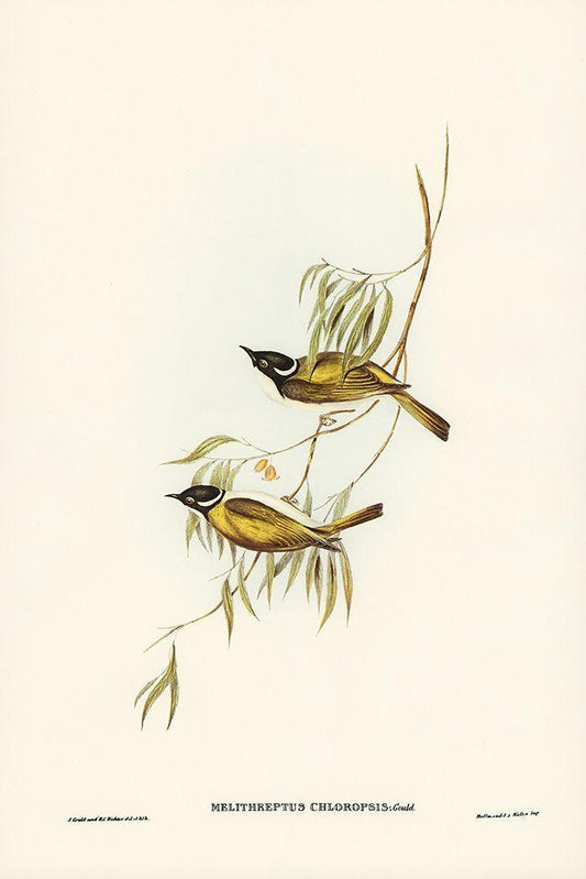 Swan River Honey-eater-Melithreptus chloropsis White Modern Wood Framed Art Print with Double Matting by Gould, John