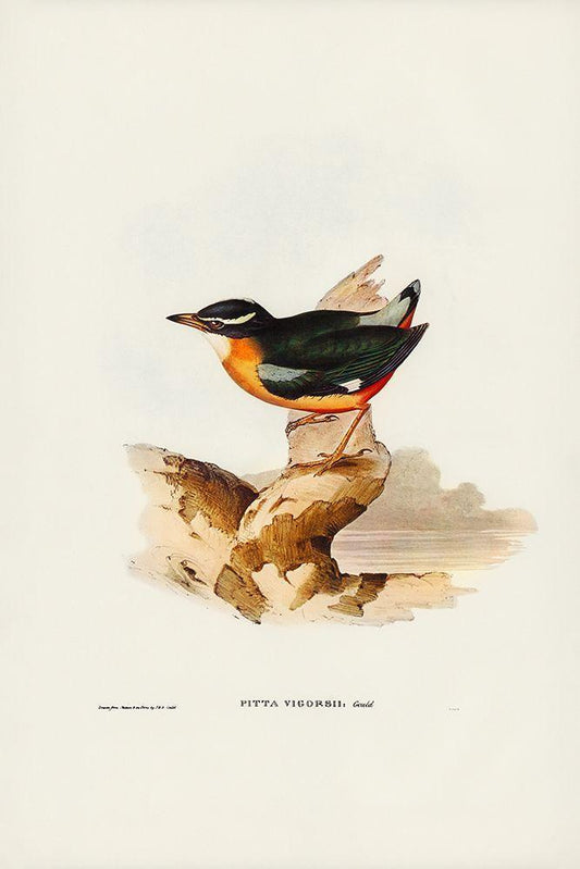 Vigors Pitta-Pitta Vigorsii White Modern Wood Framed Art Print with Double Matting by Gould, John