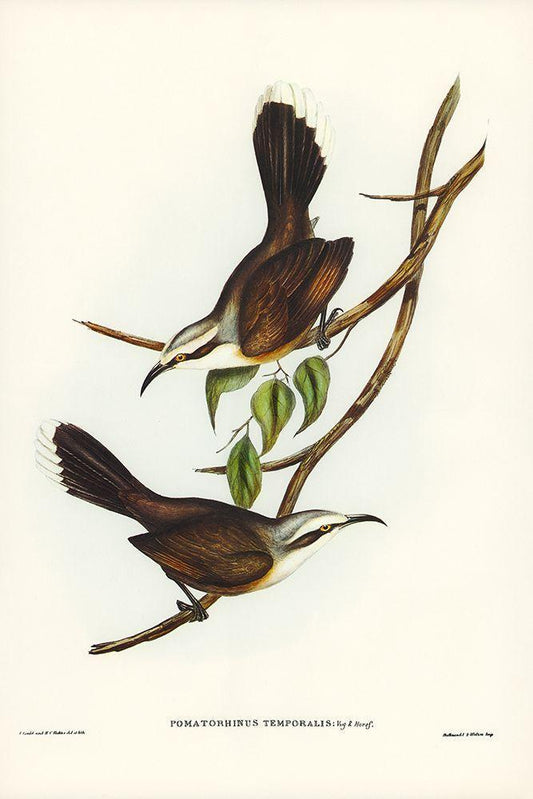 Temporal Pomatorhinus-Pomatorhinus temporalis White Modern Wood Framed Art Print with Double Matting by Gould, John