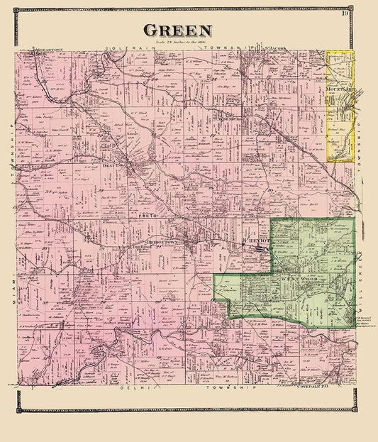Green Ohio - Titus 1869 White Modern Wood Framed Art Print with Double Matting by Titus