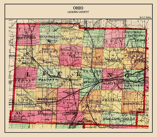 Licking Ohio - Walling 1872 White Modern Wood Framed Art Print with Double Matting by Walling