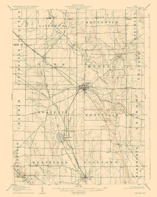 Medina Ohio Quad - USGS 1906 White Modern Wood Framed Art Print with Double Matting by USGS