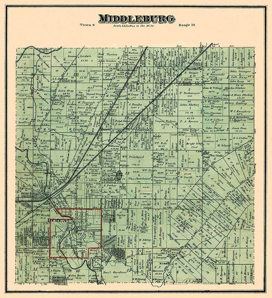 Middleburg Ohio Landowner - Stewart 1874 White Modern Wood Framed Art Print with Double Matting by Stewart
