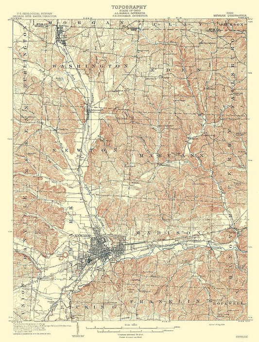 Newark Ohio Quad - USGS 1909 White Modern Wood Framed Art Print with Double Matting by USGS