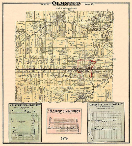 Olmsted Ohio Landowner - Titus 1876 White Modern Wood Framed Art Print with Double Matting by Titus