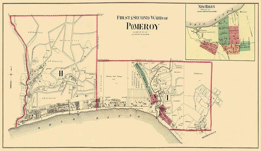 Pomeroy, New Haven Ohio Landowner - Hayes 1877 White Modern Wood Framed Art Print with Double Matting by Hayes
