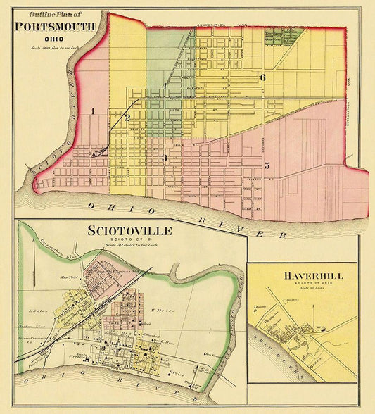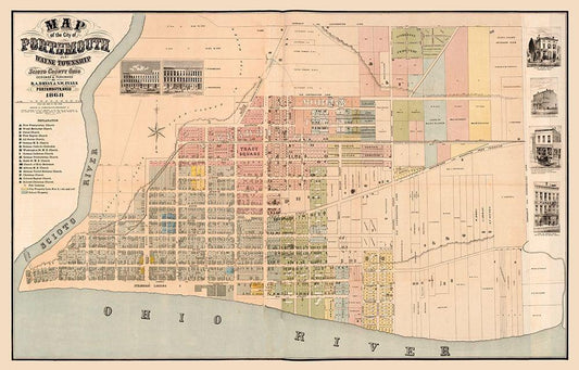 Portsmouth Ohio -Evans 1868 White Modern Wood Framed Art Print with Double Matting by Evans