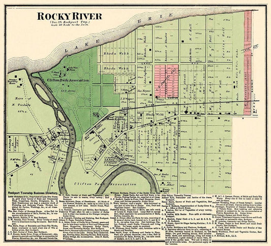 Rocky River Ohio Landowner - Titus 1876 White Modern Wood Framed Art Print with Double Matting by Titus