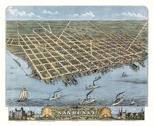 Sandusky Ohio -Stoner 1870 White Modern Wood Framed Art Print with Double Matting by Stoner