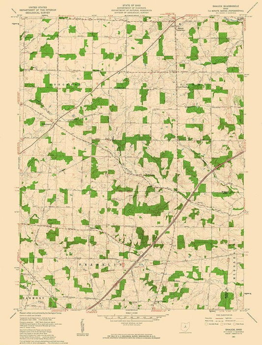 Shauck Ohio Quad - USGS 1961 White Modern Wood Framed Art Print with Double Matting by USGS