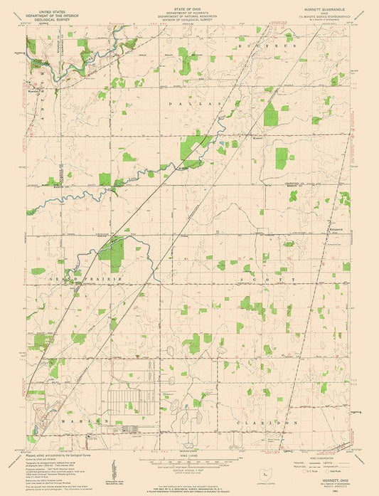 Monnett Ohio Quad - USGS 1961 White Modern Wood Framed Art Print with Double Matting by USGS