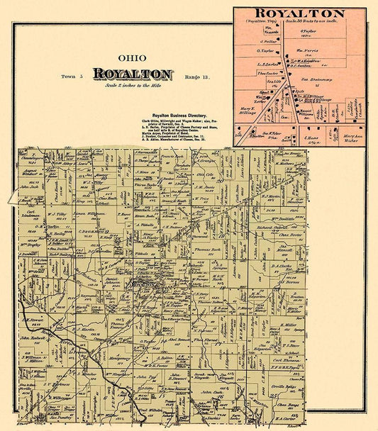 Royalton Ohio Landowner - Titus 1876 White Modern Wood Framed Art Print with Double Matting by Titus
