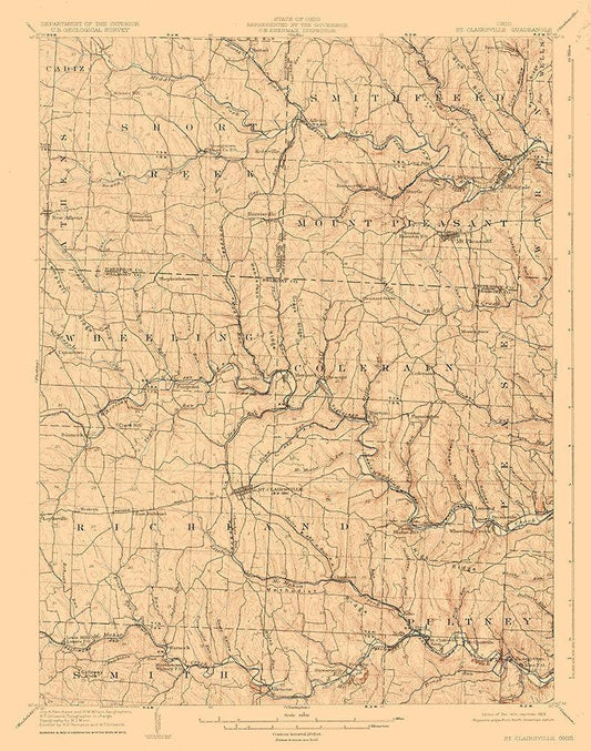 St Clairsville Ohio Quad - USGS 1905 White Modern Wood Framed Art Print with Double Matting by USGS