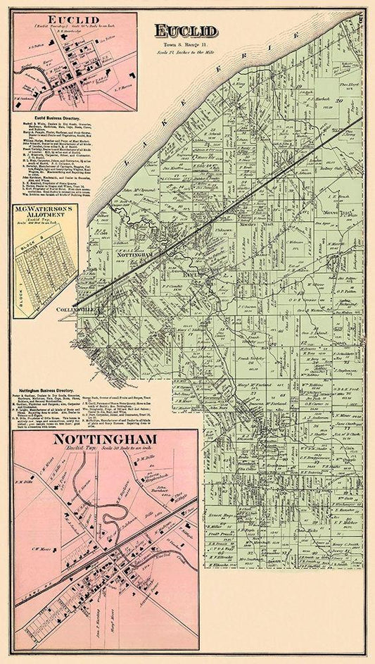 Euclid Ohio Landowner - Cram 1874 White Modern Wood Framed Art Print with Double Matting by Cram