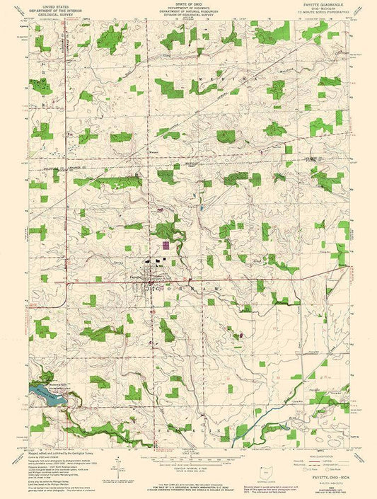 Fayette Ohio Quad - USGS 1960 White Modern Wood Framed Art Print with Double Matting by USGS