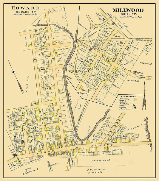 Howard, Millwood Ohio Landowner - Caldwell 1896 White Modern Wood Framed Art Print with Double Matting by Caldwell