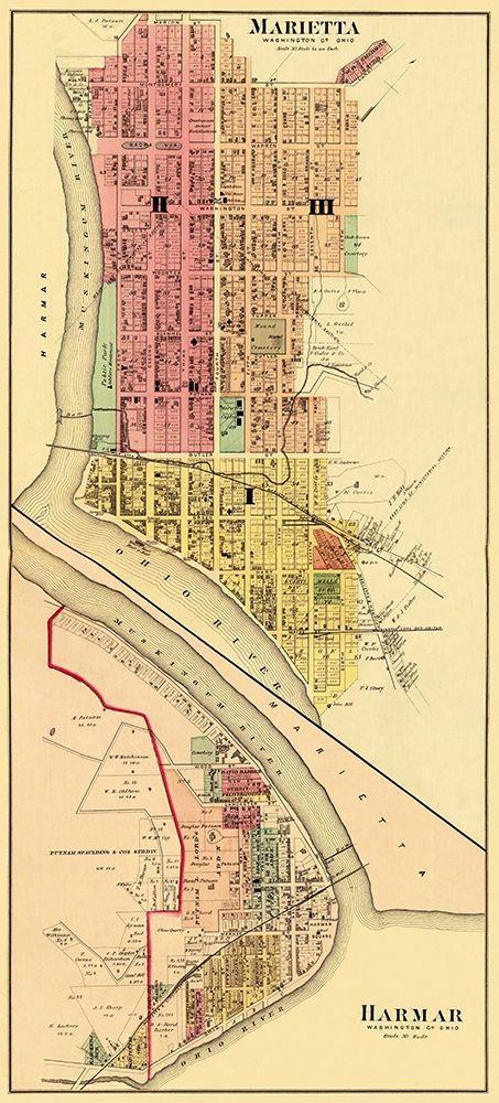 Marietta, Harmar Ohio Landowner - Hayes 1877 White Modern Wood Framed Art Print with Double Matting by Hayes