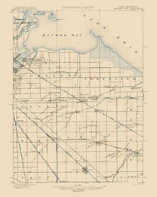 Maumee Bay Ohio Quad - USGS 1900 White Modern Wood Framed Art Print with Double Matting by USGS