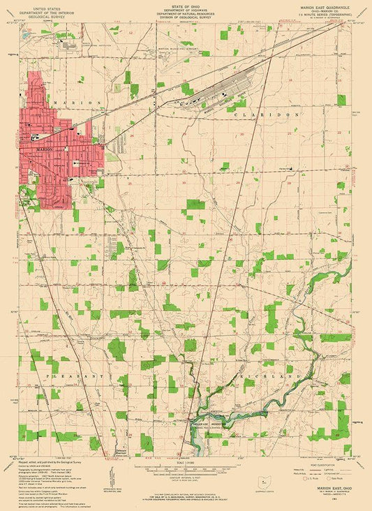 East Marion Ohio Quad - USGS 1961 White Modern Wood Framed Art Print with Double Matting by USGS