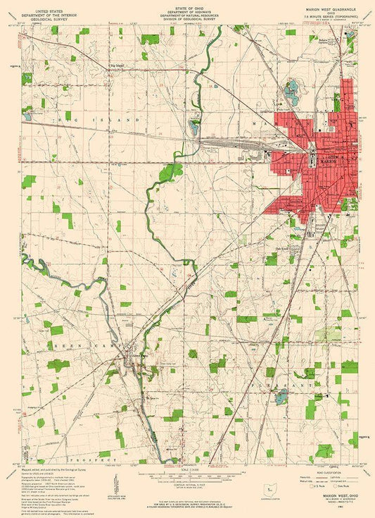 West Marion Ohio Quad - USGS 1961 White Modern Wood Framed Art Print with Double Matting by USGS