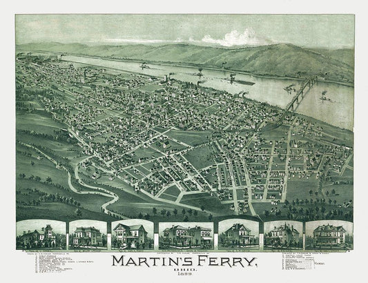 Martins Ferry Ohio - Fowler 1899 White Modern Wood Framed Art Print with Double Matting by Fowler