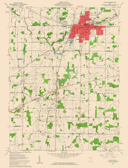 Galion Ohio Quad - USGS 1960 White Modern Wood Framed Art Print with Double Matting by USGS