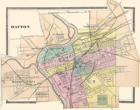 Dayton Ohio - Walling 1876 White Modern Wood Framed Art Print with Double Matting by Walling