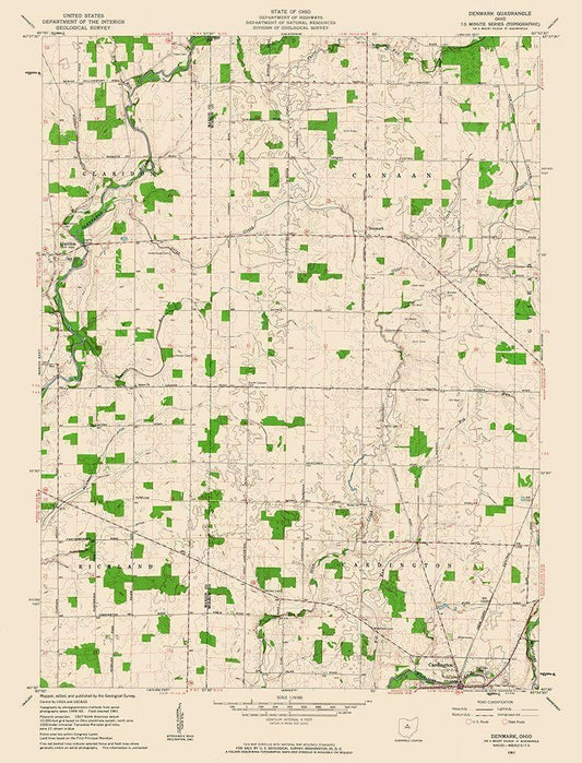 Denmark Ohio Quad - USGS 1961 White Modern Wood Framed Art Print with Double Matting by USGS