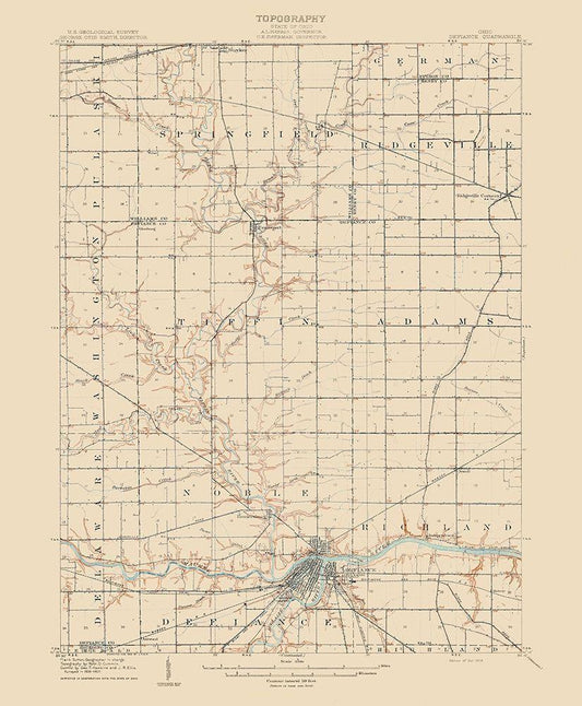Defiance Ohio Quad - USGS 1909 White Modern Wood Framed Art Print with Double Matting by USGS
