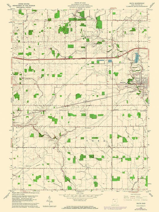 Delta Ohio Quad - USGS 1960 White Modern Wood Framed Art Print with Double Matting by USGS