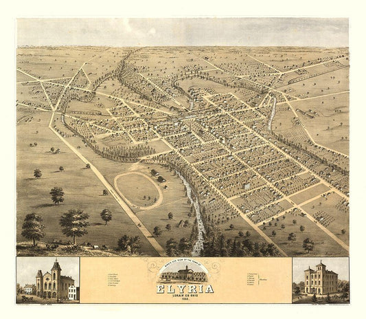 Elyria Ohio - Huger 1868 White Modern Wood Framed Art Print with Double Matting by Huger