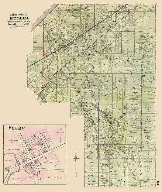 Euclid, Southern Ohio Landowner - Cram 1892 White Modern Wood Framed Art Print with Double Matting by Cram