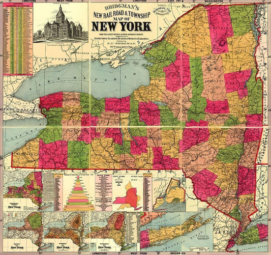 New York Railroads and Townships - Bridgman 1896 White Modern Wood Framed Art Print with Double Matting by Bridgman