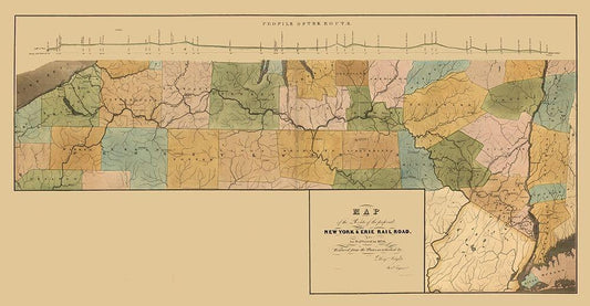 New York Railroads- Clark 1855 White Modern Wood Framed Art Print with Double Matting by Clark