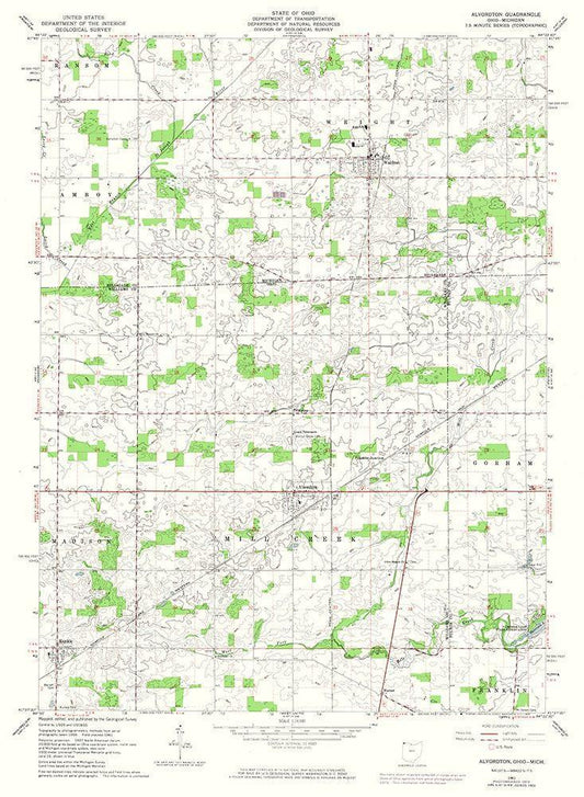 Alvordton Ohio Quad - USGS 1961 White Modern Wood Framed Art Print with Double Matting by USGS