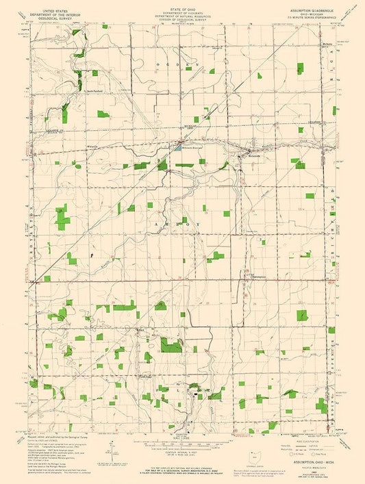 Assumption Ohio Quad - USGS 1960 White Modern Wood Framed Art Print with Double Matting by USGS
