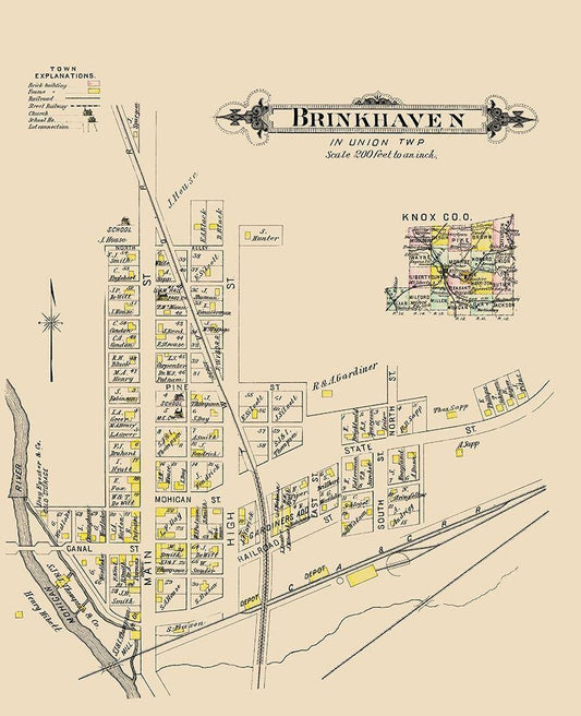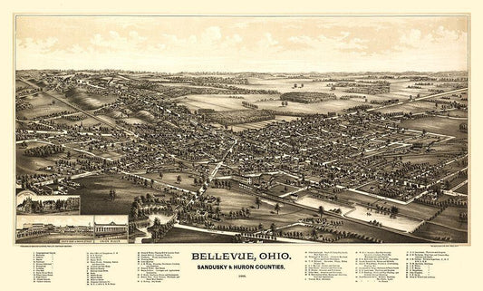 Bellevue Ohio - Norris 1888 White Modern Wood Framed Art Print with Double Matting by Norris