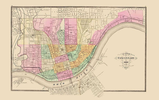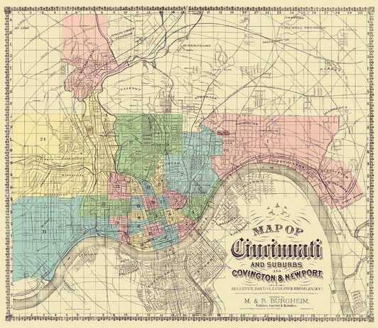 Cincinnati, Suburbs Ohio - Burgheim 1870 White Modern Wood Framed Art Print with Double Matting by Burgheim