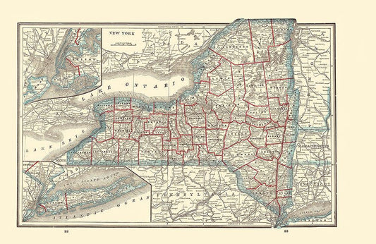 New York - Rathbun 1893 White Modern Wood Framed Art Print with Double Matting by Rathbun