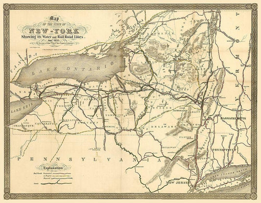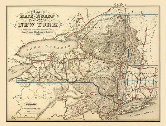 New York Railroads - Seymour 1857 White Modern Wood Framed Art Print with Double Matting by Seymour