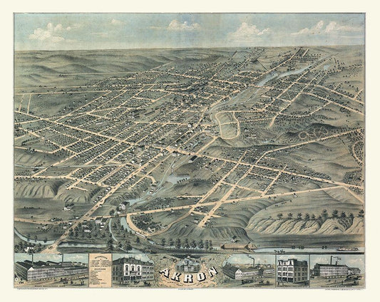 Akron Ohio - Stoner 1870 White Modern Wood Framed Art Print with Double Matting by Stoner