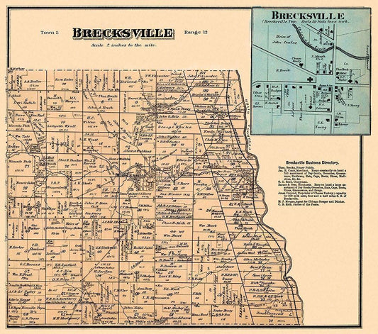 Brecksville Ohio Landowner - Titus 1874- 26 x 23 White Modern Wood Framed Art Print with Double Matting by Titus