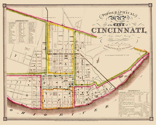 Cincinatti Ohio - Doolittle 1871 White Modern Wood Framed Art Print with Double Matting by Doolittle