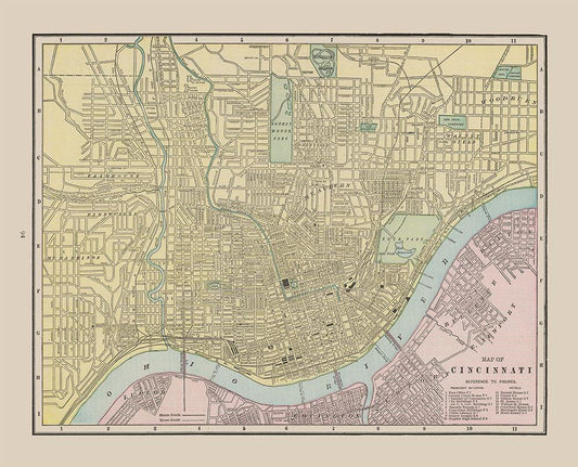 Cincinnati Ohio - Cram 1892 White Modern Wood Framed Art Print with Double Matting by Cram