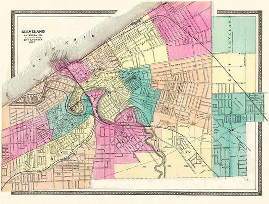 Cleveland Ohio - City Engineer 1872 White Modern Wood Framed Art Print with Double Matting by City Engineer
