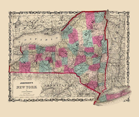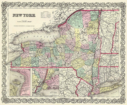 New York - Johnson 1860 White Modern Wood Framed Art Print with Double Matting by Johnson