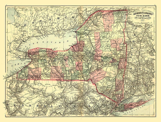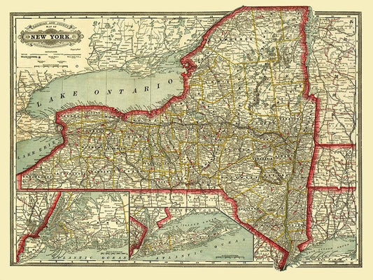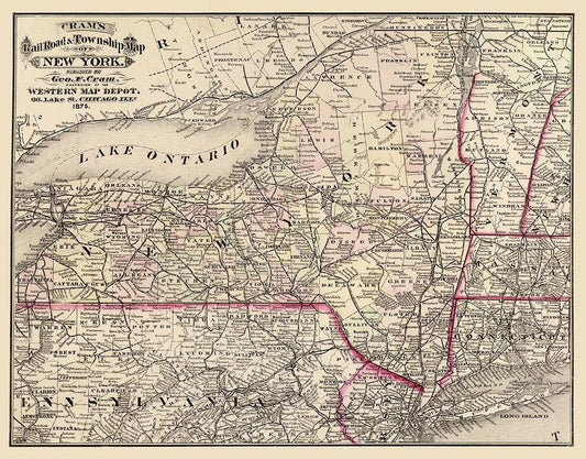New York - Cram 1875 White Modern Wood Framed Art Print with Double Matting by Cram