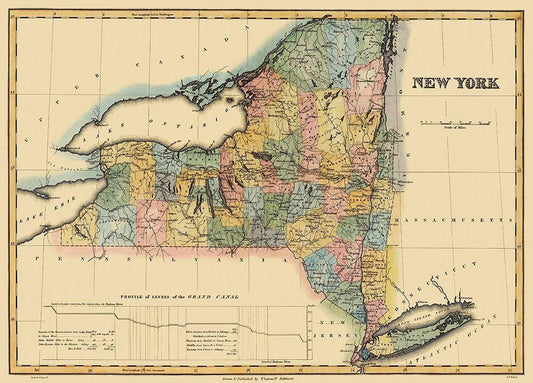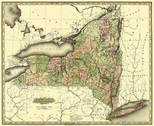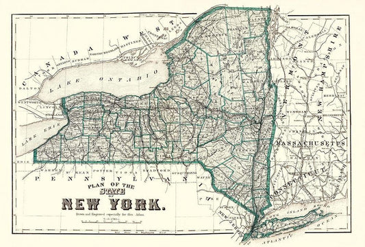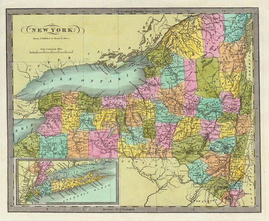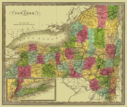 New York - Greenleaf 1840 White Modern Wood Framed Art Print with Double Matting by Greenleaf